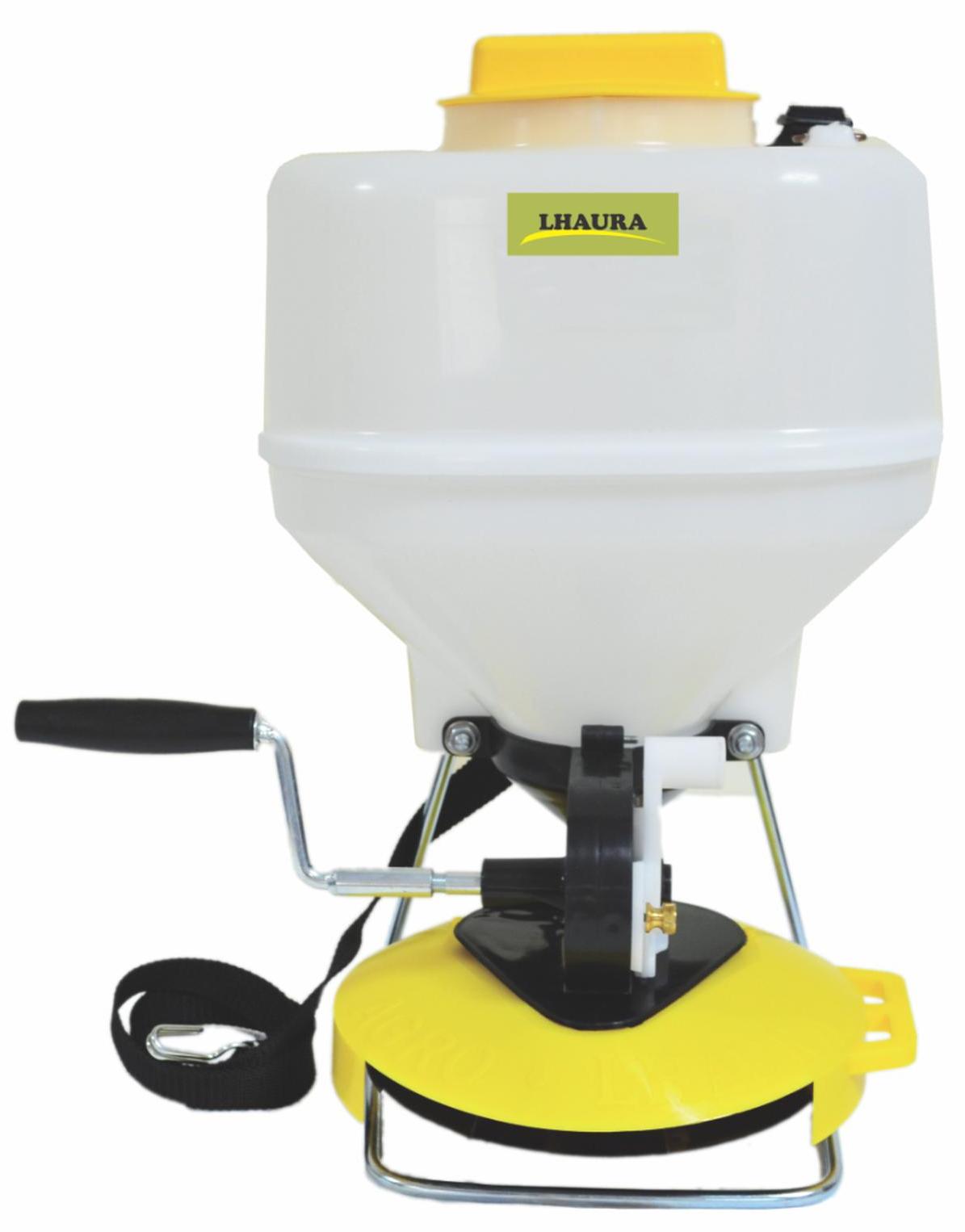 - Posee un plato aspersor que distribuye la semilla o el abono utilizado.