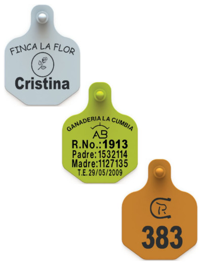 Dispositivo plástico comunmente usados en la identificación de ganado vacuno.